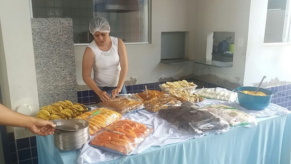 A visita ocorreu na área coberta no pátio da unidade. As famílias compartilharam momentos de confraternização e dividiram uma refeição.