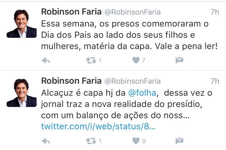 Em suas redes sociais, Robinson Faria divulgou a comemoração, como mostramos acima.