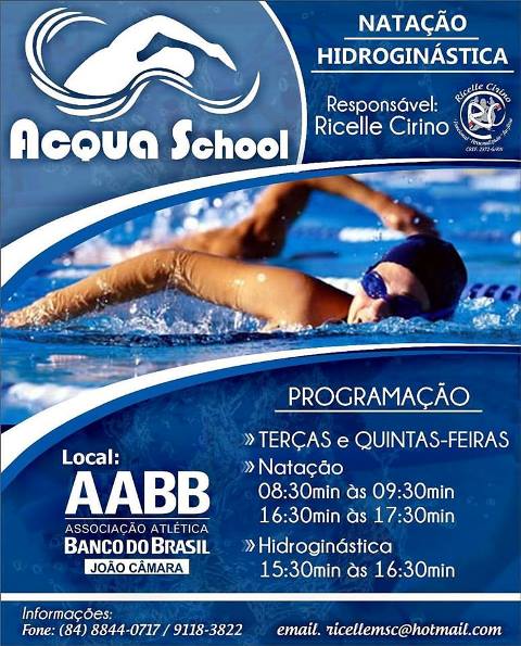 Atenção: Tem inÃcio nesta terça-feira 01 de agosto as aulas de "Natação Hidroginástica" na AABB João Câmara.