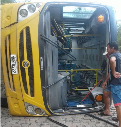 Riachuelo: ônibus do transporte escolar tomba na descida da serra da formiga.