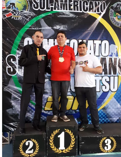 O prefeito de João Câmara, Maurício Caetano subiu ao pódio neste domingo no ginásio João Lucas de Araújo, por ocasião da realização do Campeonato Sul-americano de Jiu Jitsu.