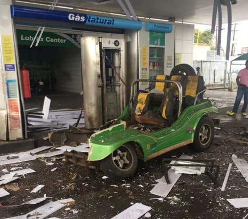 A violência foi tão grande que o cilindro foi parar no canteiro central da avenida e o Posto ficou com o teto praticamente destruído.
