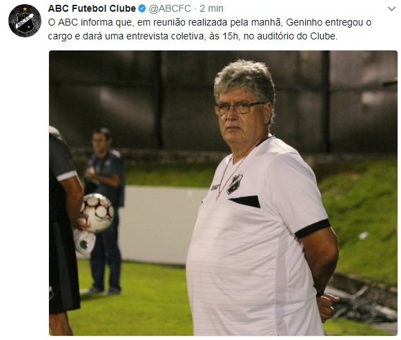 Informação da saída do treinador foi confirmada através do Twitter do ABC na manhã desta quarta-feira(19). ABC vem de sete derrotas consecutivas na Série B e amarga a penúltima colocação da competição nacional.
