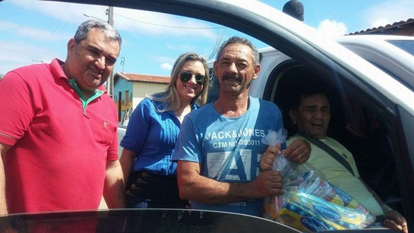 O Vice-prefeito Holderlin Silva(PODEMOS), acompanhado de seu pai Francisquinho da Madereira e da Secretária de Meio Ambiente Hermida Araújo, realizaram na manhã de hoje(19) a distribuição de várias cestas básicas a famílias carentes do município de João Câmara.