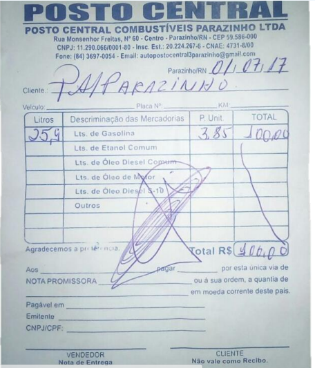 Suspeita-se de uma acusação grave na cidade de Parazinho (RN) contra o ex-prefeito Genival Martins, que é o marido da atual prefeita do município, Rita de Luzier, estaria usando talões de notas de abastecimento doPOSTO CENTRAL COMBUSTÍVEIS, autorizando o fornecimento de gasolina e óleo diesel para os seus correligionários políticos, por conta dos cofres municipais.