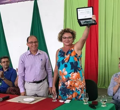Em seguida, o reitor do IFRN entregou à professora a medalha e certificado de distinção institucionais, símbolos de agradecimento e reconhecimento pelos trabalhos desenvolvidos como professora, gestora e promotora da justiça social. “Com a aposentadoria da diretora-geral do Campus João Câmara, confiamos na competência dos servidores da Casa, que vão dar continuidade à construção da identidade e das ações desenvolvidas pelo Instituto na região do Mato Grande”, declarou o reitor.