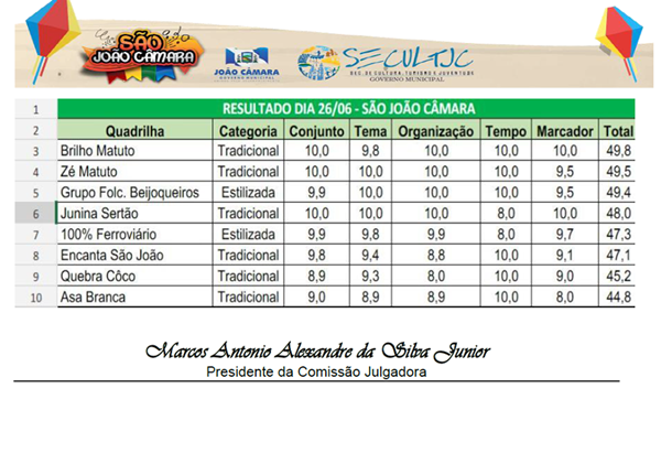 João Câmara: Secretaria de Cultura, Turismo e Juventude divulga resultado preliminar do Festival Junino 2017.