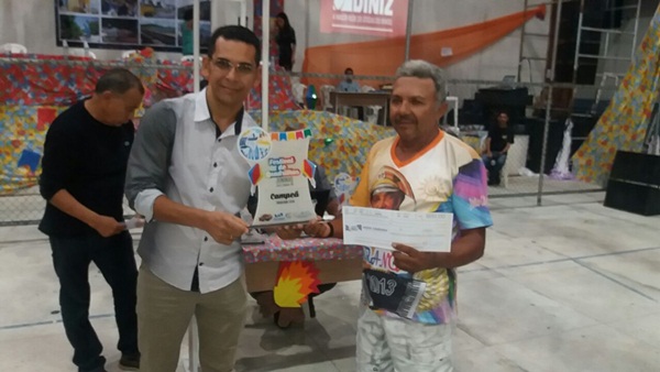 Um dos representantes da Brejo de Ouro recebeu a premiação das mãos do prefeito Mauricio Caetano.