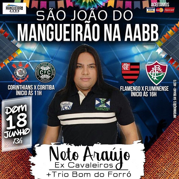 Amanhã você não pode perder!! Arraiá do Mangueirão na AABB com Trio bom do Forró + Neto Araújo Ex- Cavaleiros do forró, com início às 13h.