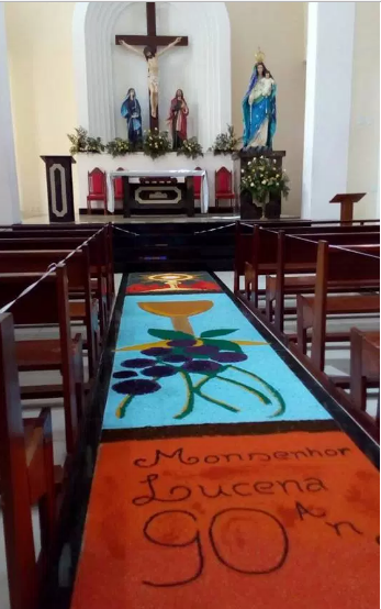 Seguindo a tradição religiosa a igreja matriz de Nossa Senhora Mãe dos Homens em João Câmara já está preparada para a Missa de Corpus Christi logo mais às 16h.