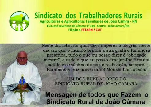 Mensagem do Sindicato dos Trabalhadores Rurais pelos 90 Anos do Monsenhor Lucena.