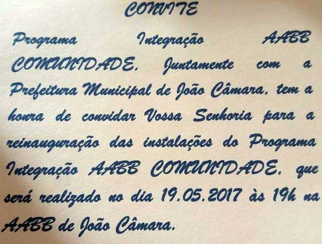João Câmara: Convite reinauguração das instalações do programa "Integração AABB Comunidade"