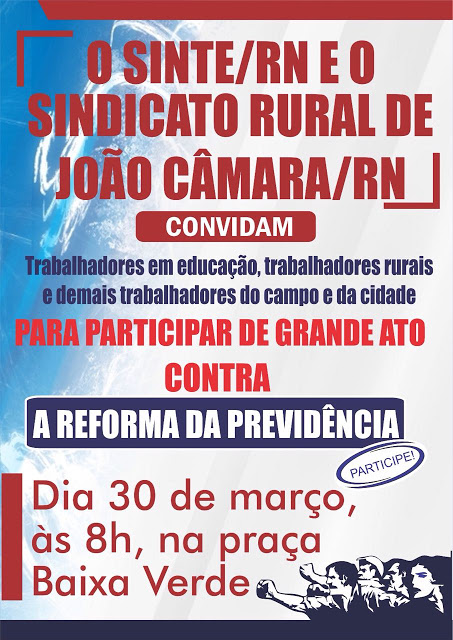 SINTE/RN e Sindicato Rural promovem, grande ato contra a Reforma da Previdência,na Praça Baixa Verde as 8hs.