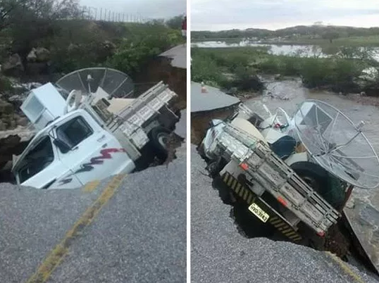 A região do Seridó continua sendo agraciada com registro de boas chuvas. Na noite deste domingo choveu bastante em diversos municípios seridoenses. Um trecho da RN 118 que liga Jucurutu a São Rafael ficou comprometido depois que um enorme cratera se formou na RN. Um carro que transporta uma mudança foi engolido pela cratera.