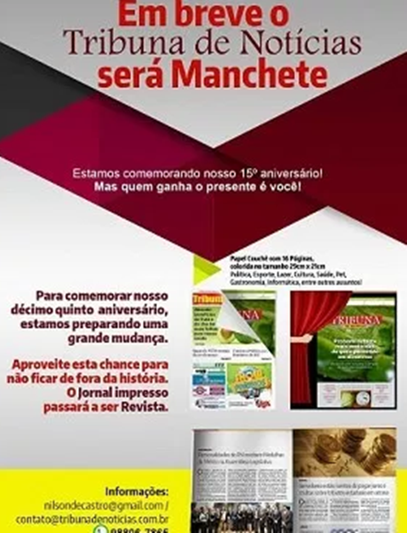 O jornal Tribuna de Notícias, que há 15 anos é distribuído gratuitamente na zona Norte de Natal, agora se transformará em revista.