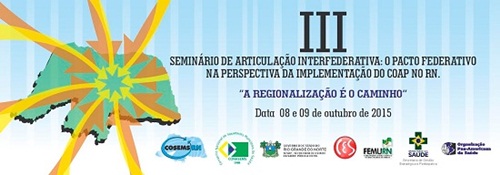 O Conselho de Secretarias Municipais de Saúde do Rio Grande do Norte (Cosems-RN) juntamente com a secretaria estadual de Saúde Pública (Sesap), Ministério da Saúde (MS), e outros parceiros, realizarão nos dias 8 e 9 de outubro, o III Seminário de Articulação Interfederativa: o pacto federativo na perspectiva da implementação do Contrato Organizativo da Ação Pública da Saúde (COAP) no RN.