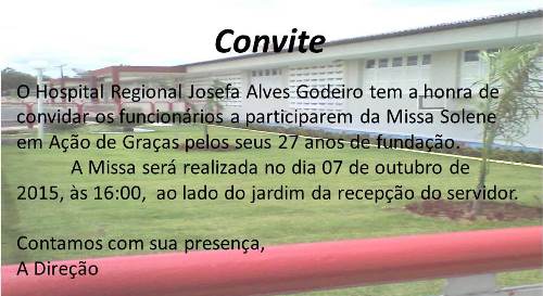 O Hospital Regional Josefa Alves Godeiro em João Câmara completa 27 anos de fundação e para comemorar a data, a atual direção da Unidade, mandará celebrar uma missa em Ação de Graças na tarde desta quarta-feira 7 de outubro.