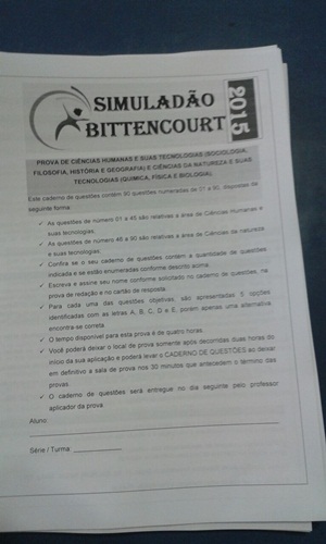 A Escola Estadual Francisco de Assis Bittencour, realizou na manhã de hoje um simulado com os alunos do 3º Ano do ensino médio, o objetivo do simulado é preparar os alunos para a prova do ENEM.