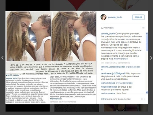 A ordem judicial, publicada no dia 1º de setembro, prevê multa diária caso não seja cumprida, segundo Gustavo Rabbay. A decisão atendeu a um pedido do governador Ricardo Coutinho, que reclamava na Justiça por meio de uma ação de danos morais. Pâmela Bório passou a utilizar as redes sociais para criticar uma outra decisão judicial, que determinava a guarda compartilhada da criança.
