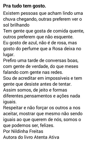 Escritora Nildinha Freitas deixa mensagem a todos os leitores do blog.