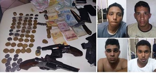 A vítima já havia sido assaltada em R$ 2 mil no dia 1º de agosto pela mesma quadrilha. A vítima reconheceu o grupo como autores do crime. Com o grupo, a polícia apreendeu dois revolveres, calibre 38, e material proveniente de assaltos. Como dinheiro e celulares.