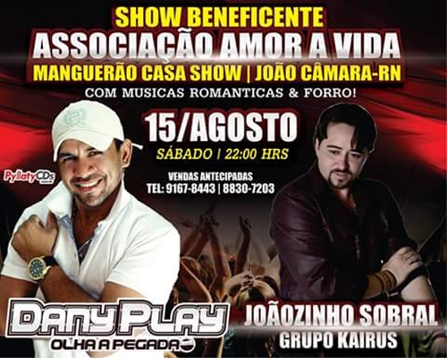 João Câmara: Associação Amor a Vida promoverá show beneficiente.