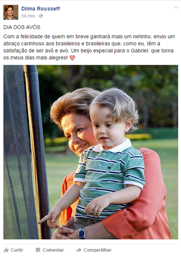 No Dia dos Avós, Dilma anuncia que será avó pela segunda vez.