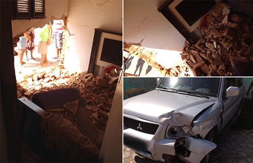 Carro desgovernado derruba parede e invade quarto de residência no RN.