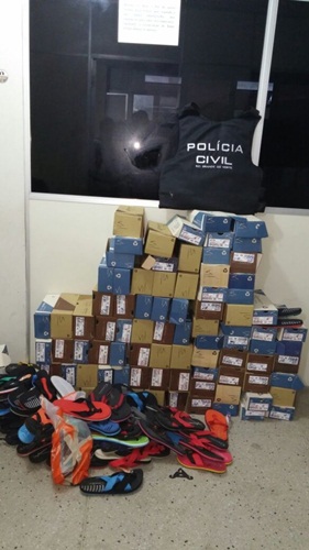 Após receber uma representação da marca, a equipe policial se dirigiu até o estabelecimento comercial onde constatou ser verídica a comercialização dos calçados falsos.
