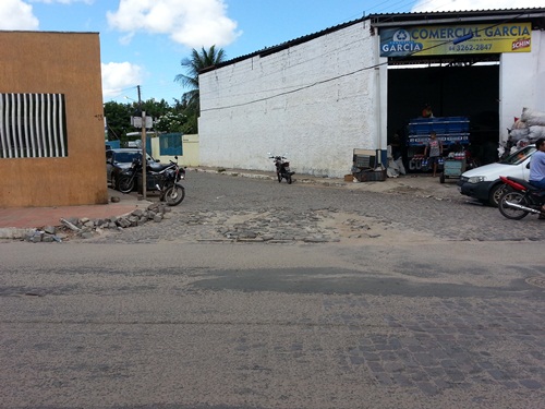 João Câmara: Calçamento totalmente danificado na entrada da rua João Teixeira.
